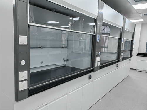 2)照射:應用方形節電孔燈,隱秘于頂板上,不與室內通風柜上研究所氣休可以接處,易撤換,色彩飽和度完全性達到研究所標準。